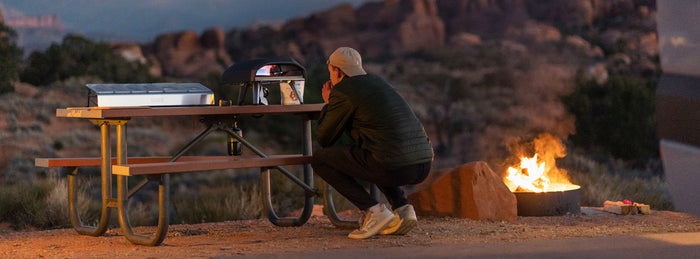 This path is not for the casual traveler. Located in the ancestral home of the Southern Paiute people, we had to weather difficult roads in a high-clearance vehicle to find our way to the precipice. But standing at the edge of a 3,000-foot sheer drop looking out over the North Rim and the Colorado River, we saw a certain rugged beauty that made us feel instantly at one with nature. This remote area is open for camping, so we set up our portable Ooni oven alongside our tent and cooked a top-tier fireside meal. Relying on our Ooni oven made cooking under the stars easy. We brought everything we needed with us since there are no food, gas or phone services nearby.