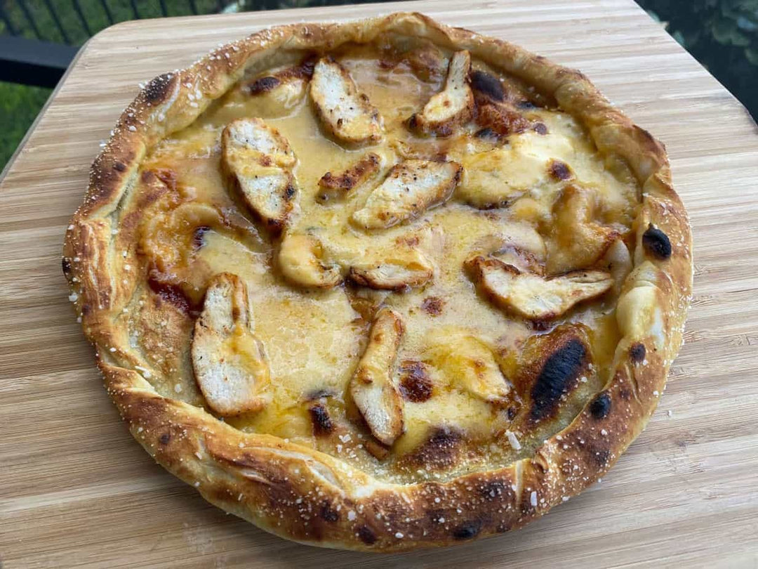 This pretzel-pizza hybrid is the collab you didn’t know you needed. Thanks to the genius of Ooni ambassador Josh Tahan, you can enjoy the best of both worlds – a salty, pretzel crust surrounds a pizza base topped with gooey beer cheese and fiery BBQ chicken. If you’d rather use plain cheddar, it’s just as good. This pizza is knot to be missed!