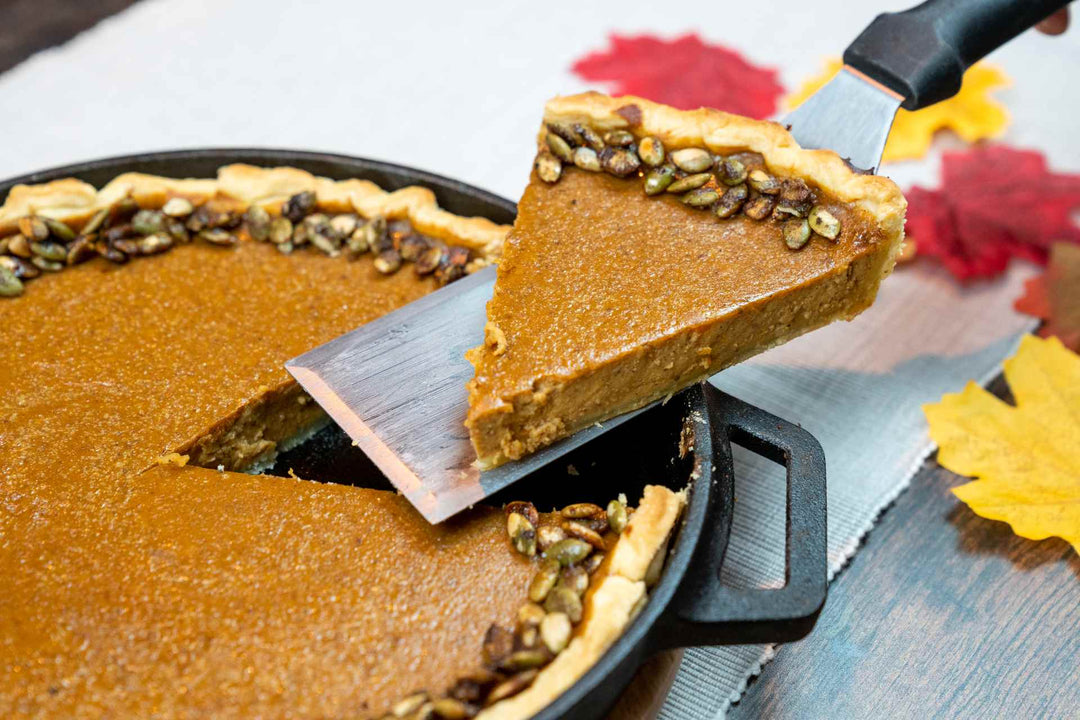 If you’re already using your Ooni oven (or your conventional oven) to prepare Spatchcocked Turkey or Green Bean Casserole with Fried Onions, this pie is perfect for baking while your oven is cooling down, since we've designed the dish to cook in the residual heat of the oven. If you’re not utilizing your oven for the main meal, you can simply preheat it up to temperature, turn it off, and bake. If you’re planning on cooking ahead of time (We’re already proud of you!), the crust and filling can be prepared in advance, so all you need on Thursday is 30 minutes in the oven and 30 minutes to cool down. If you’re way ahead of the game and will make your pie in the days before Thanksgiving, simply bake, allow to cool completely, cover tightly and store in the refrigerator until you’re ready to eat. (If so, allow for at least 30 minutes for the pie to come to room temperature.)