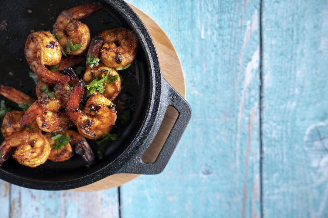 A buttery, spicy marinade is the secret to these simple but flavorful grilled shrimp. Laced with cayenne pepper and paprika, grill them super fast using the Ooni Cast Iron Sizzler.