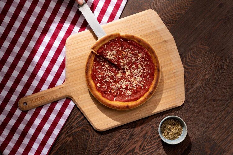 The Chicago deep dish pizza is by no means your typical Italian pizza – that’s what makes it so special! An upside-down pizza of sorts, this unique pie first layers cheese, Italian sausage, onions and green peppers directly onto thick, crunchy pastry. It’s then finished with a generous layer of rich tomato sauce. Recreate the Chicago classic with our recipe, cooked in an Ooni pizza oven and our cast iron Skillet.