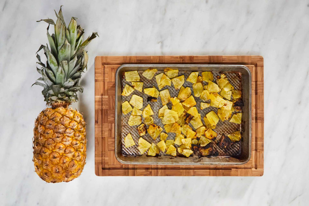 We’ve heard all the arguments against pineapple on pizza: watery, sweet, cloying, syrupy, and something that looks, well, mass-produced. And that can all be true if you use canned pineapple. For our pineapple pizzas, we caramelize fresh fruit in extra-virgin olive oil and salt, making it less sweet, chewier, and a little salty, putting each of those arguments to rest.
