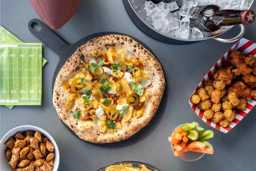Our pizza version stays true to the original recipe, with cheese and chili creating the base, and sour cream, Fritos, cilantro and jalapeños going on post bake for textural interest. It’s not as portable as the bagged Frito pie, but it’s arguably even more delicious.