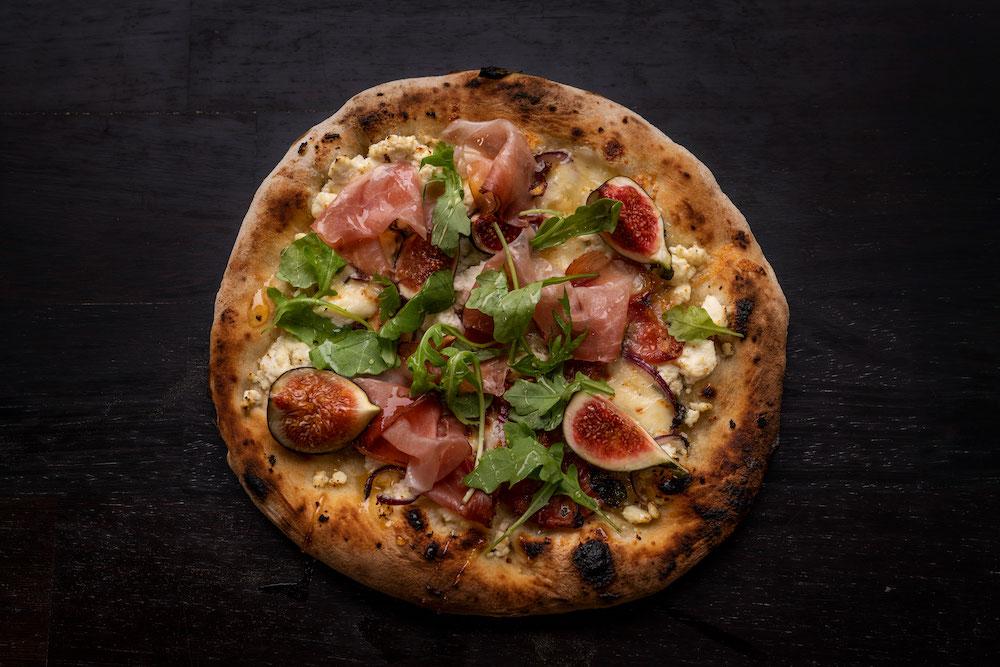 A show-stopping pizza topped with luxurious fresh figs and peppery arugula, offsetting salty prosciutto and creamy ricotta.