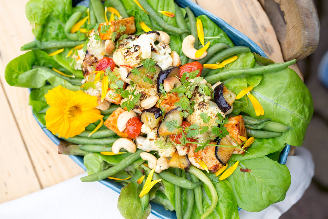 Spicy Tofu Salad with Cashews & Eggplant