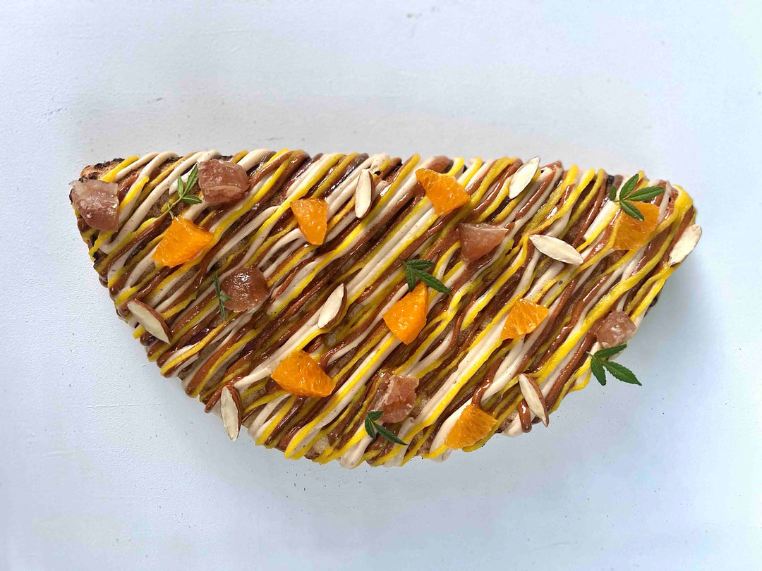 While chestnuts aren’t a popular ingredient in the US, we’re pretty confident that this sweet chestnut and clementine pizza from French chef, Manon Santini (@manon_santini), will become a new dessert favorite. With their starchy, meaty interior, chestnuts create a lovely base for a thick, creamy custard, and for the pizza, it's spread over a light, crispy dough with a tasty almond praline.