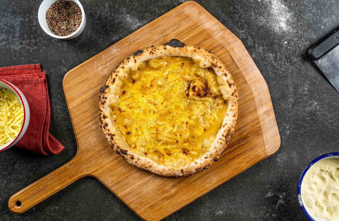 For this reinterpretation, we’ve taken the creamy cheese sauce and slathered it over pizza crust. Topped with extra cheese and fresh ground black pepper, it’s cooked just like any cheese pizza and served hot. Its simplicity lends itself to experimentation: Adjust the Worcestershire sauce to your liking, try a blend of hard cheeses, or even opt for the local Welshman’s Caviar (if you can get ahold of some).