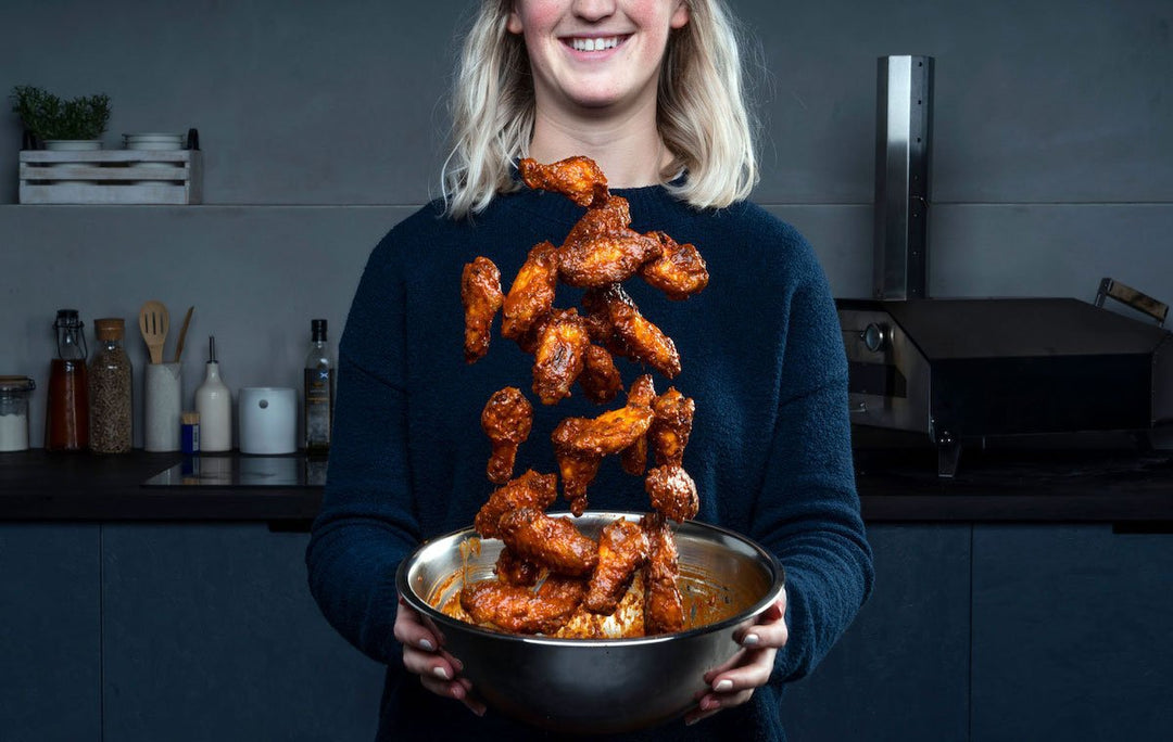 Baked rather than fried, please your party guests with a classic that everyone can get behind – super spicy, moreish buffalo wings! Dressed in a rich and sticky sauce with a hint of honey, cooking this buffalo chicken wings recipe in your Ooni means maximum wood-fired flavor for game day.