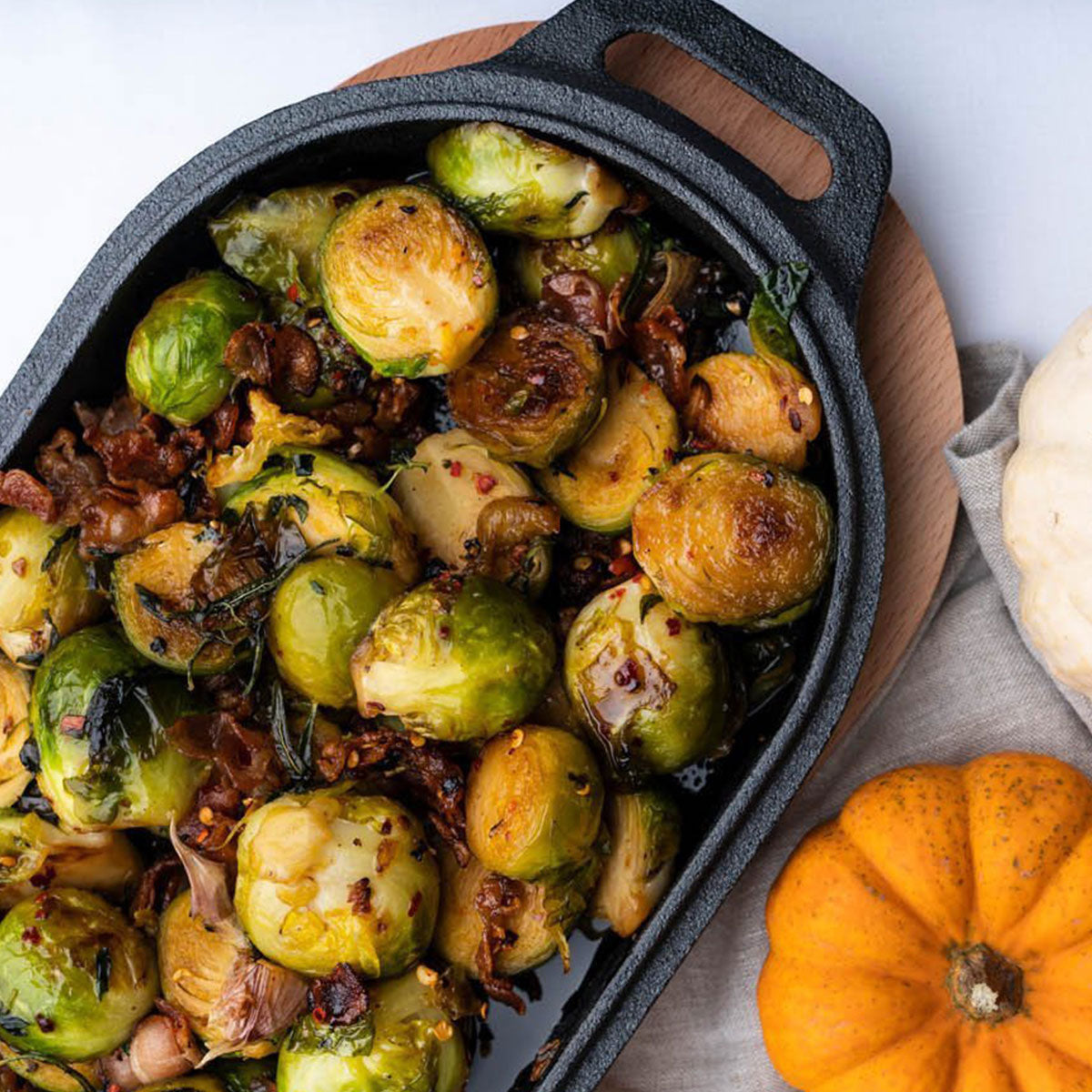 Brussels Sprouts with Bacon & Chilli