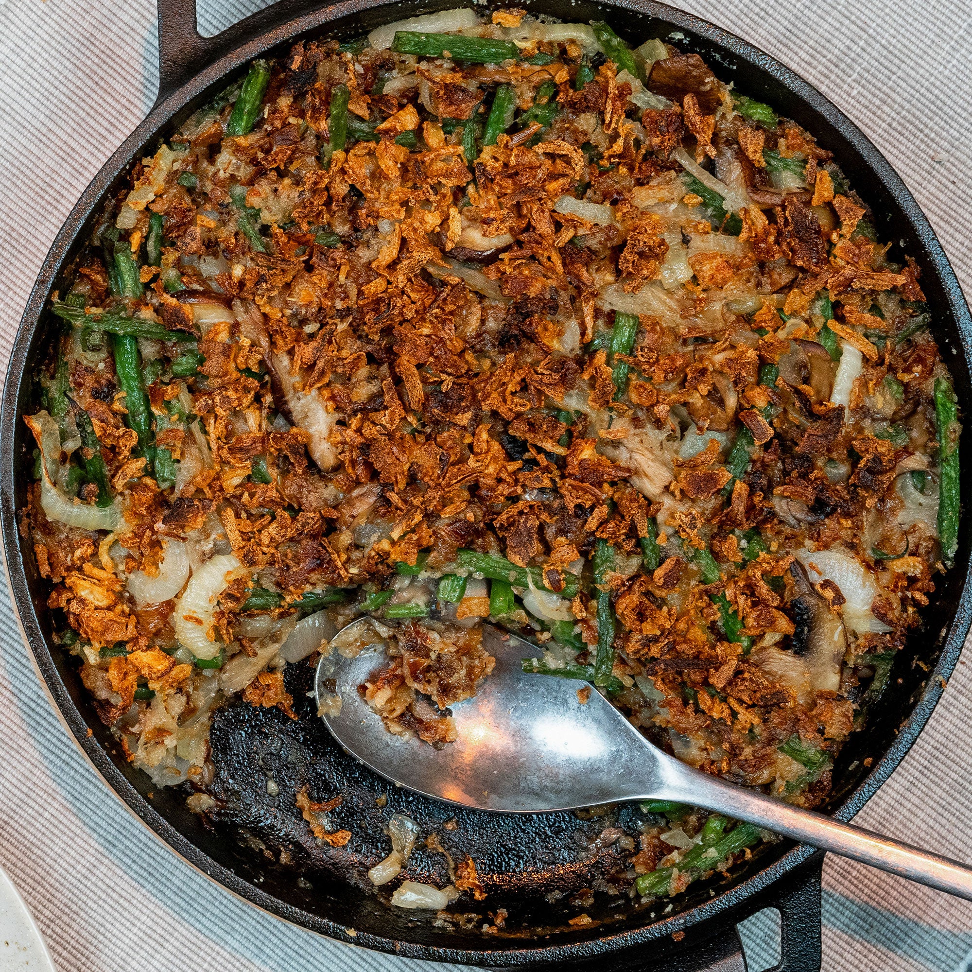 Cast Iron-Baked Green Bean Casserole with Fried Onions